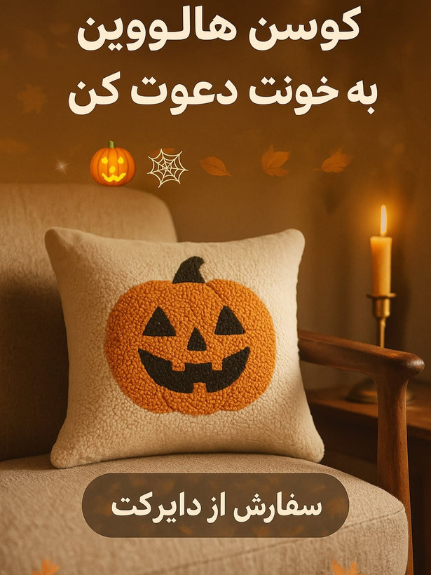 کوسن پانچ‌دوزی طرح کدو هالووین